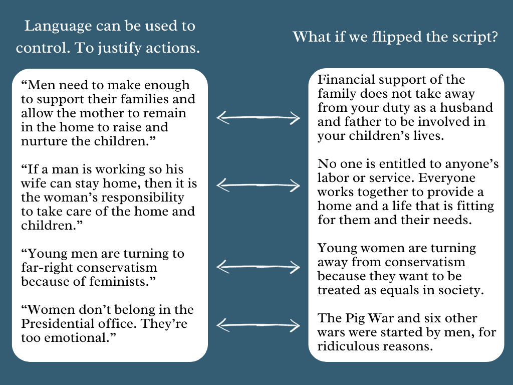 How do we feed into this continued sexist and misogynistic language in our own daily lives? What can we do to change it?